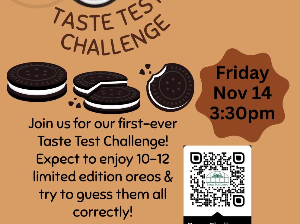 For Grades 2-5: Join us for our first ever Taste Test Challenge! Enjoy 10-12 limited edition Oreos and try to guess them correctly. Registration required at https://l.ead.me/bgHSc5