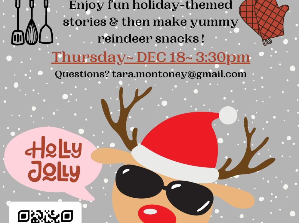 For Kids: Enjoy fun, holiday-themed stories and then make yummy reindeer snacks! Registration is required at https://l.ead.me/bgMTXQ